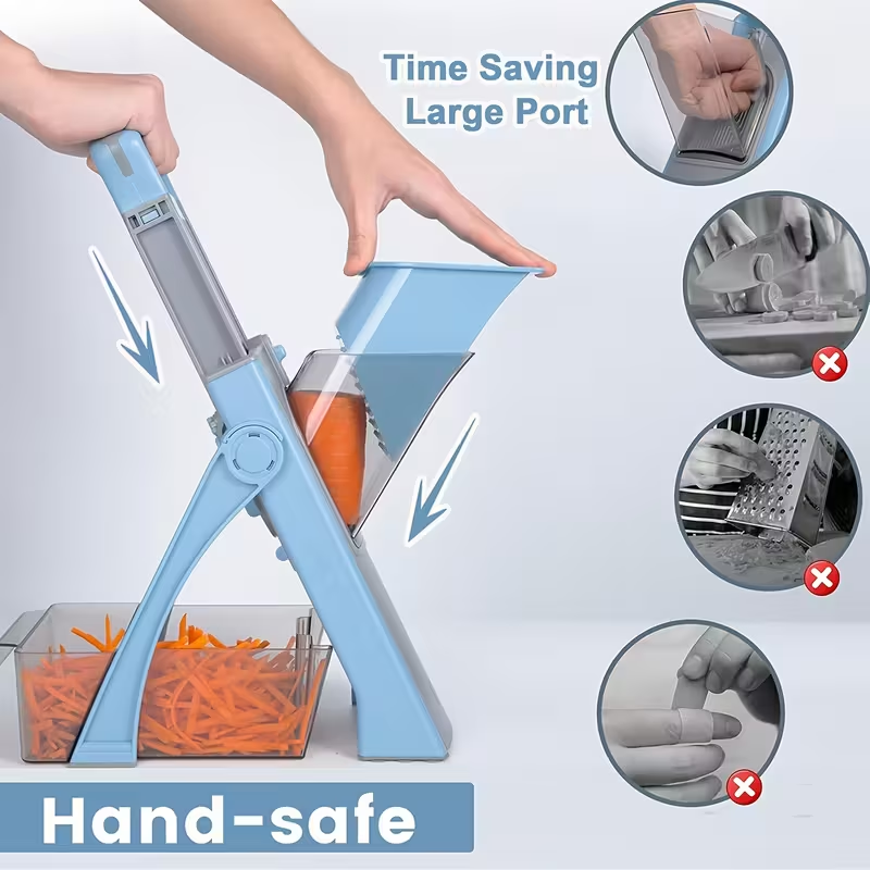 Adjustable stainless steel blade for slicing and shredding vegetables, non-slip base, durable and a professional chef's choice.